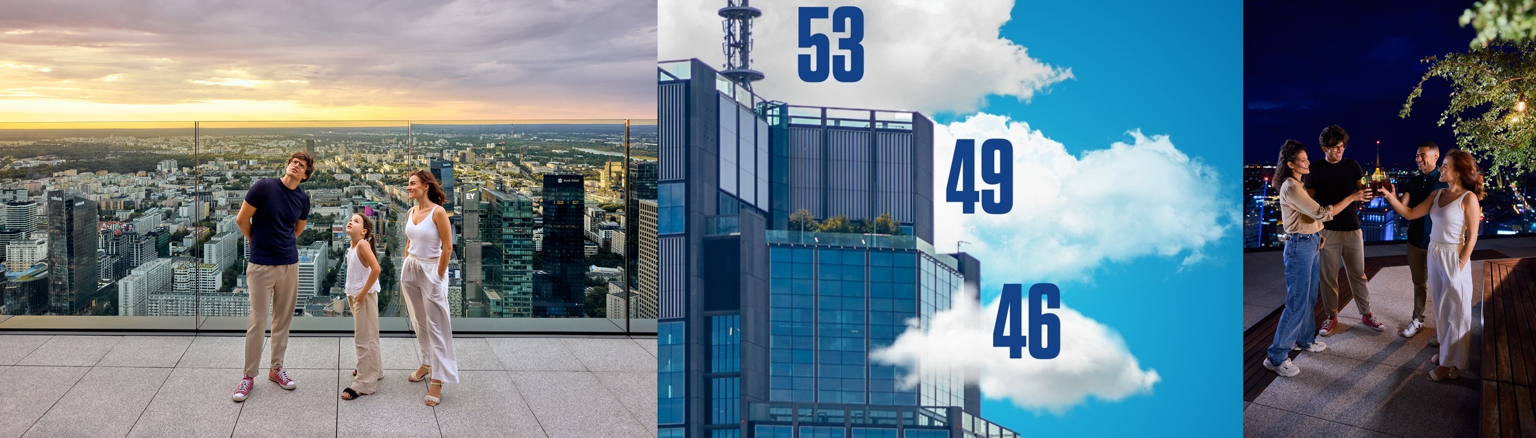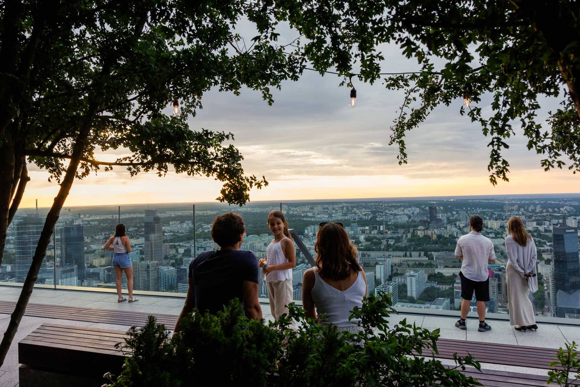 In cima, sulla terrazza panoramica al 53° piano, si trova il punto più alto accessibile al pubblico dell'UE. Da questo punto sopra le nuvole, gli ospiti godono di una vista mozzafiato su Varsavia e possono scattare foto indimenticabili.